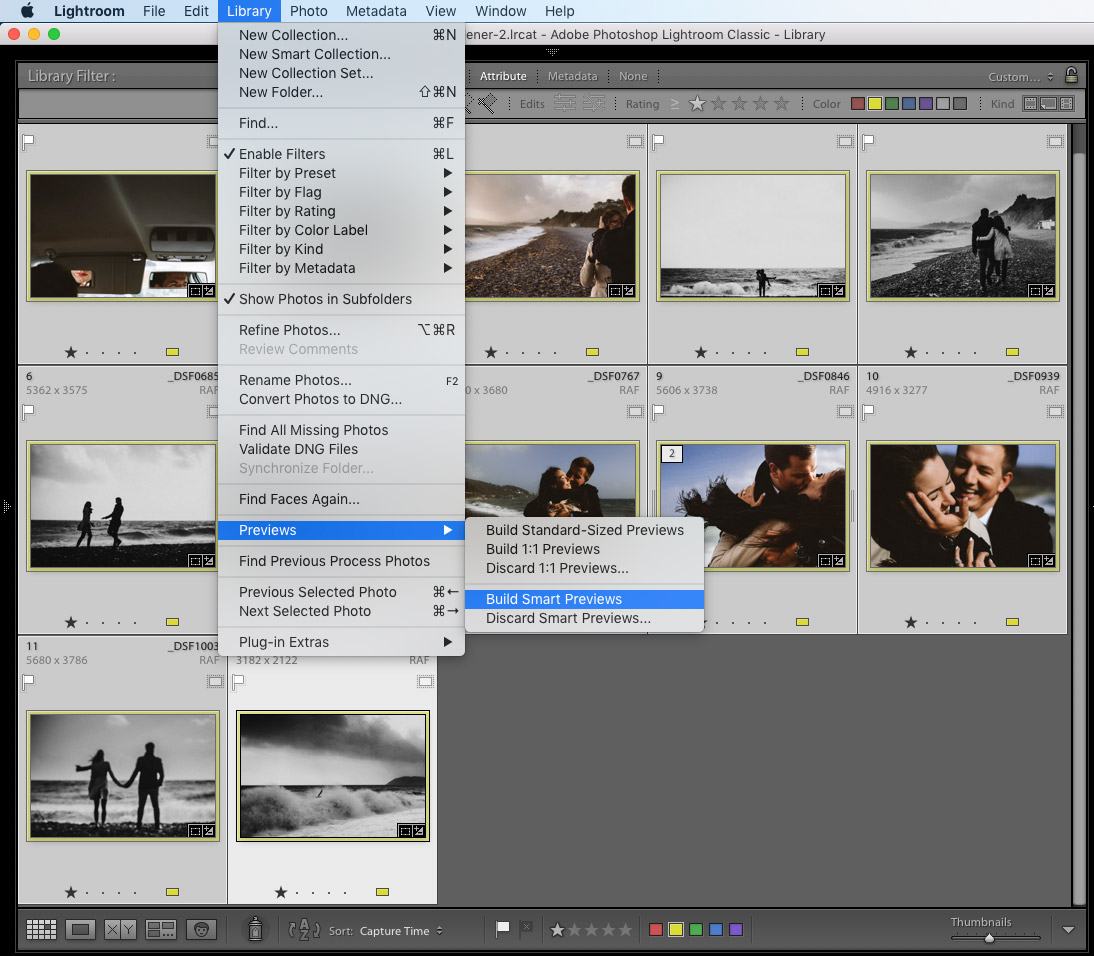 Smart previews – ta funkcjonalność pozwala na selekcję i obróbkę materiału bazując na samej bibliotece lightrooma (nie potrzebne są pliki RAW!).